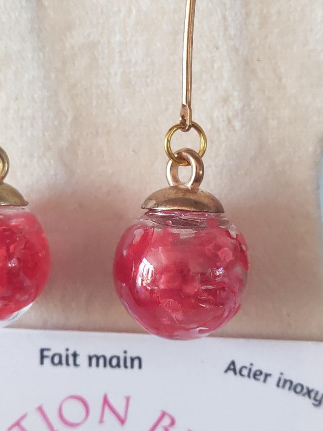 Acier inoxydable, perle en verre avec fleurs rouge