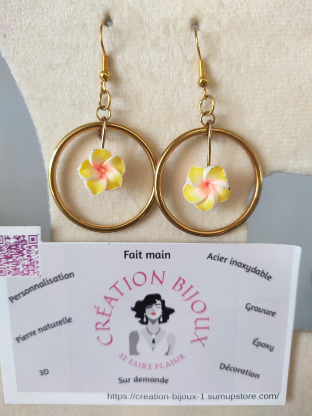 Boucle d'oreille ronde ,fleur