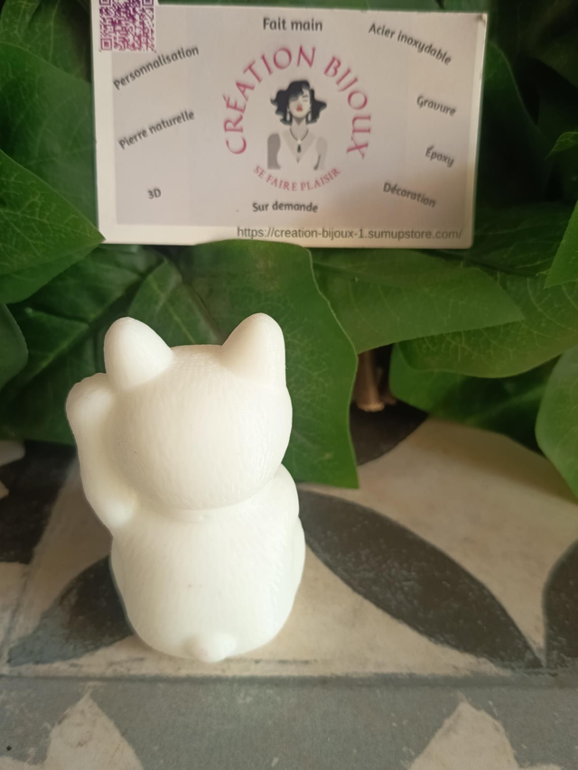 Ajoutez une touche de chance et de décoration unique avec ce chat amulette imprimé en 3D, symbole de protection et de bonheur.