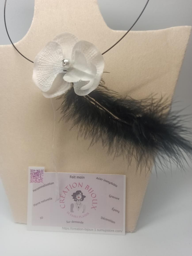 Collier orchidée et plume