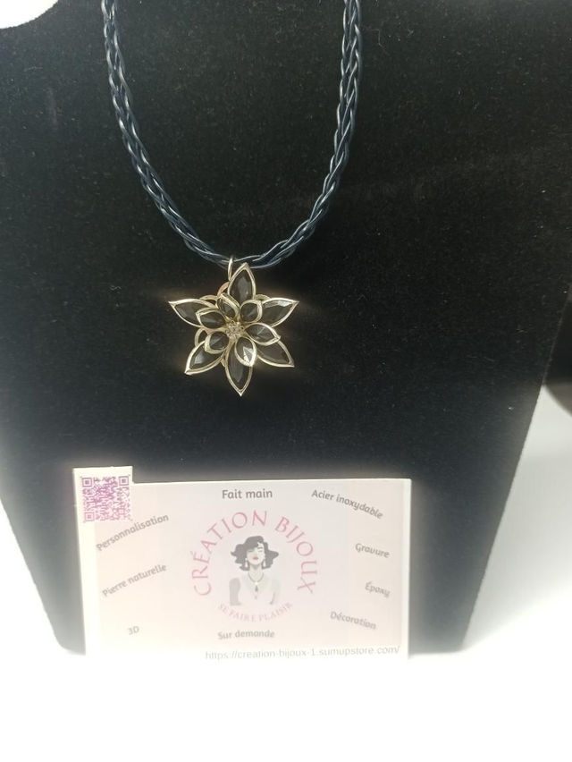 Collier tressé et fleur noir