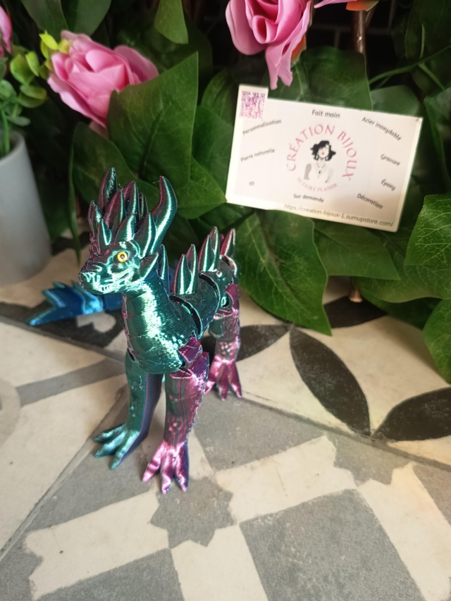Apportez une touche fantastique et originale à votre décoration avec ce dragon imprimé en 3D, idéal pour les passionnés de fantasy, jeux ou objets insolites.