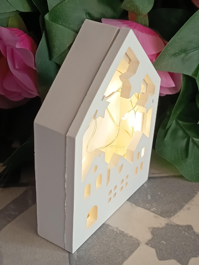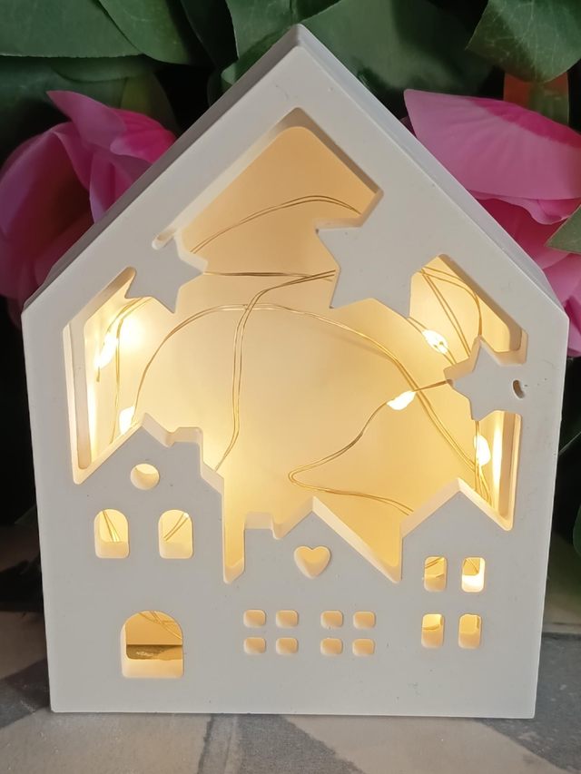 Maison Village en jesmonite avec guirlande lumineuse