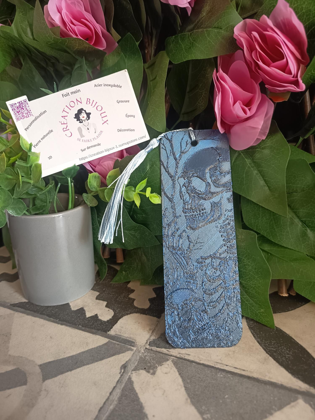 Marque page squelette bleu et noir