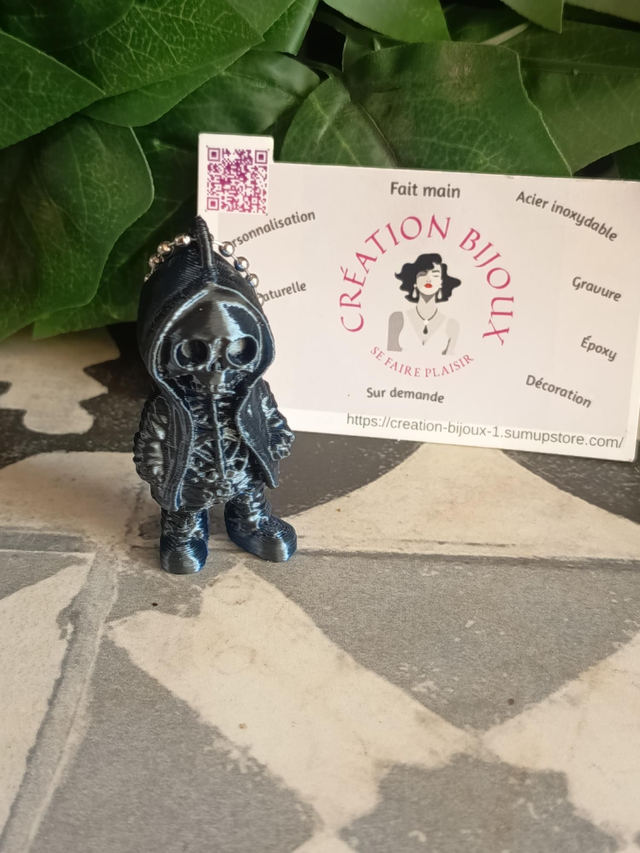 Porte clé squelette noir et bleu